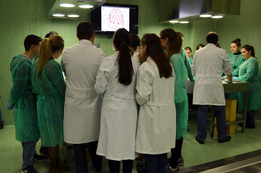 Con mis alumnos de anatomía en la sala de disección de la Facultad de Medicina de Ciudad Real