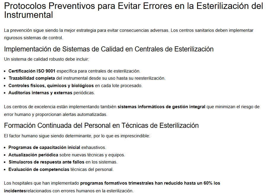 - En un proceso judicial por una supuesta negligencia o fallo en la esterilización, tener un sistema certificado ISO 9001 o ISO 13485 puede servir como evidencia documental de que el centro tenía procedimientos controlados, auditados y validados.