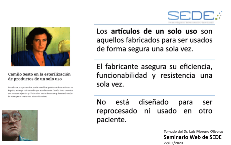 Y lo dice el título del Capítulo III «Reprocesamiento y nueva utilización de productos de un solo uso», habla del reprocesamiento y nueva utilización. Porque incido en lo de nueva utilización, por que mucha gente que me ha oído en foros, siempre hablo de la funcionalidad de los preservativos caducados en las carteras de los adolescentes de los años 80. Ahora tenemos que demostrar que el producto que reprocesamos funciona como si fuera nuevo. Eso no lo podemos hacer con los medios de nuestros hospitales.