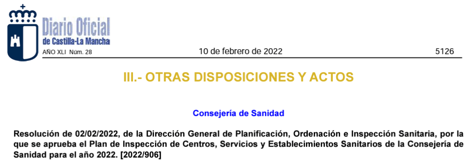 En el Plan de Inspección de la JCCM, la esterilización aparece como uno de los puntos del mismo: